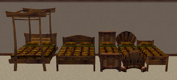 Darker wood textured set, part 3, custom mesh re-colours.