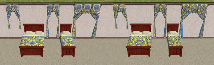 Art Nouveau/Deco themed beddings with matching tie back curtains.