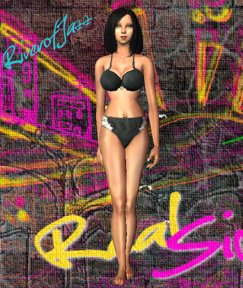 Undies - Blue Satin Bra set w/ black trim on Warlokks 34Dnat 40Hips