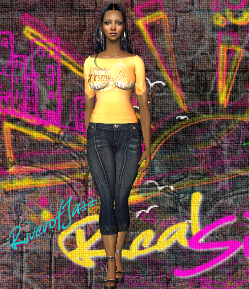RenGal - Orange Baby Phat Off Shoulder Top & Denim Capri