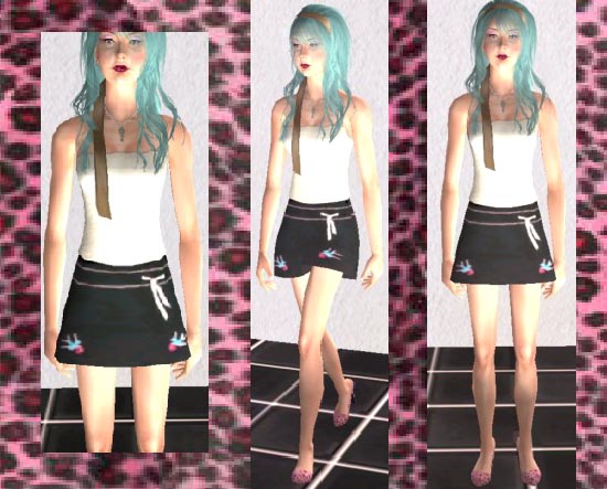*-*Skirt with Swallows, Pink leopard shoes*-*