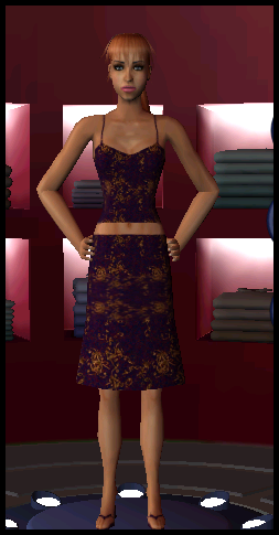 purple pattern top and skirt