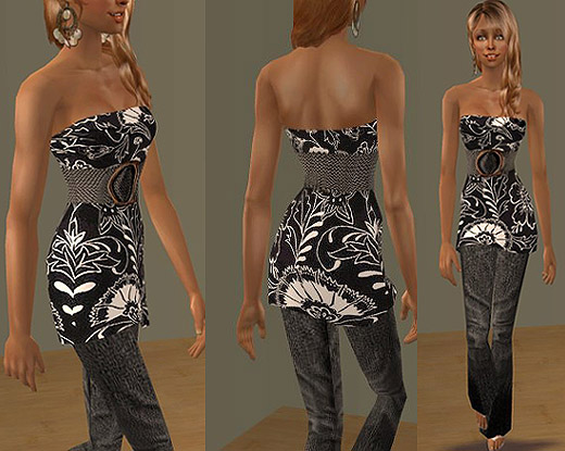 Black Print Belted Tube Tunic top
