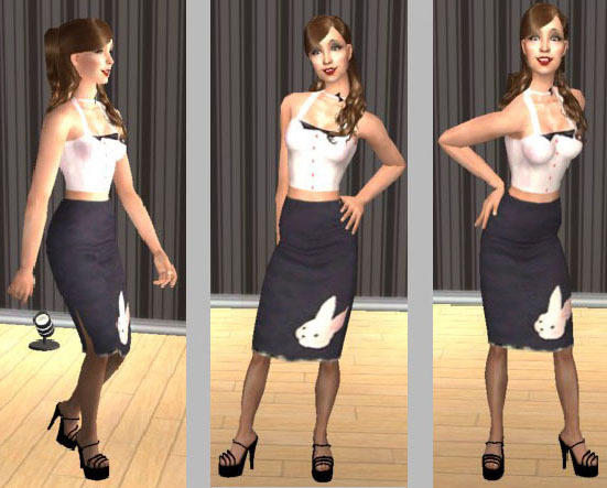 black skirt and top, lacehose and black shoes "as requested".