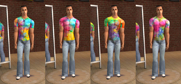1970's hand/tie dye t-shirt outfits for the slimmer bodybuilder.